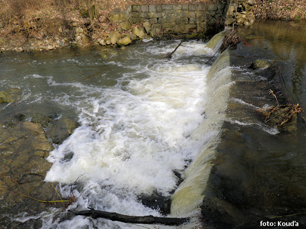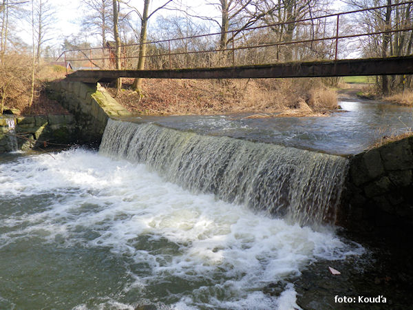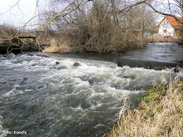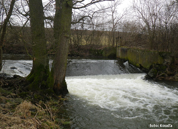 most pěší nebo lávka a následuje za jez v 2,0 m – začátek regulace, dále 1 km několik jez (stupeň) !! 1,0 km |