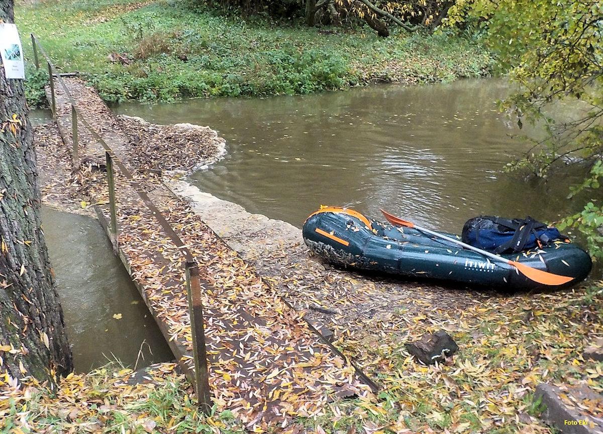 Pozor na přestavovaném jezu Sány trčí z koruny jezu armovací dráty (viz kilometráž). Nebezpečné pro ...