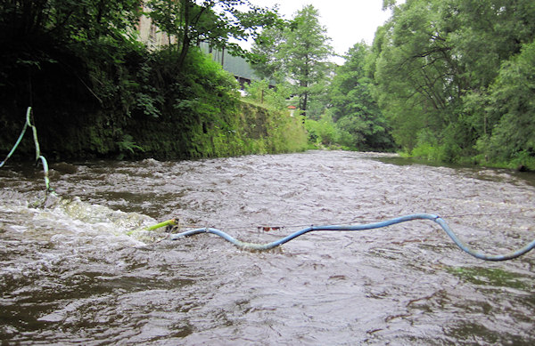 vodočet vlevo, jez(stupeň) sjízdné 0,3 km |