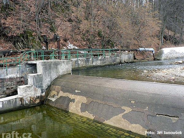 Přenést jez pod Jaroměří lze snáze, než jsem popisoval na podzim 2010. Dobře se dá přistát před most ...