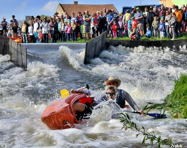 jez přenést vpravo vysoký (m) 1,6 náhon vpravo, !! pod jezem ostrůvky, voda táhne na stromy 0,1 km |