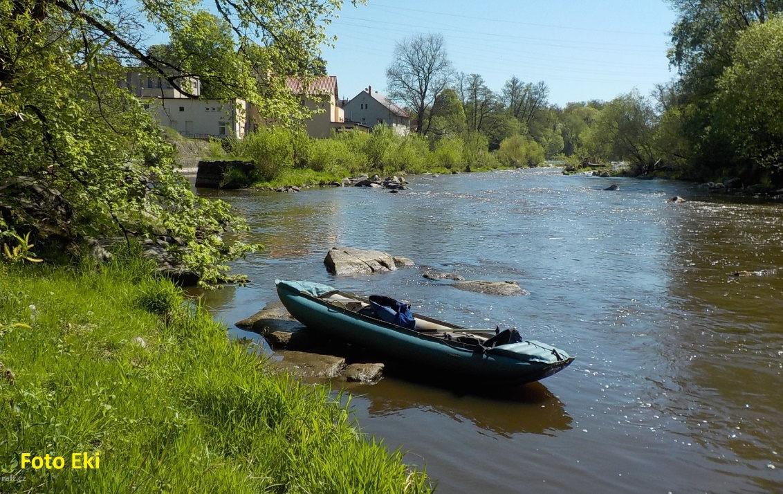 Jez Podělusy je v rekonstrukci a nelze sjet. Řeka je zde zatrubněna a vzniklo potenciálně nebezpečné ...