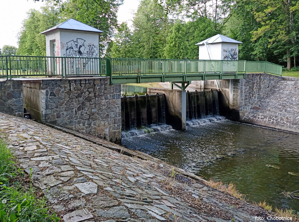 jez přenést vpravo vysoký (m) 2.3 náhon vlevo, Spálenský mlýn a následuje za 500 m jez (stupeň) vysoký (m) 0.5 1,1 km |