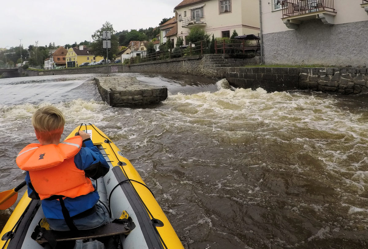 most pěší nebo lávka krytá býv. rechle, býv. náhon sklárny vlevo a následuje za (stupeň) sjízdné 2,8 km |