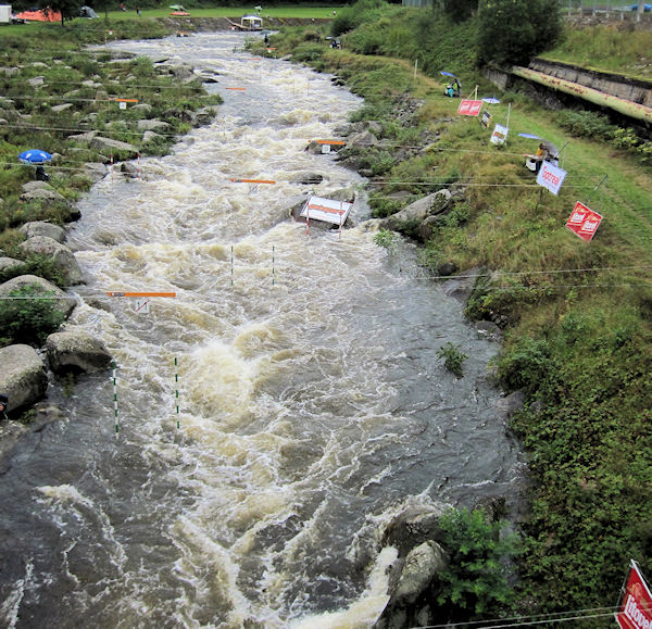 jez s propustí vpravo přenést vpravo vysoký (m) 3,4 nesjízdné, pohyblivý PK vlevo, slalomový kanál WW II - IV vpravo, Hotel (pension) ubytovna cp tábořiště vp 0,8 km |