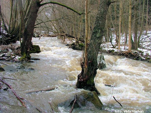Bystřice volně průjezdná z Domašova do Hrubé Vody. V nájezdu do "Ďáblova chřtánu" částečně trčí zlev ...