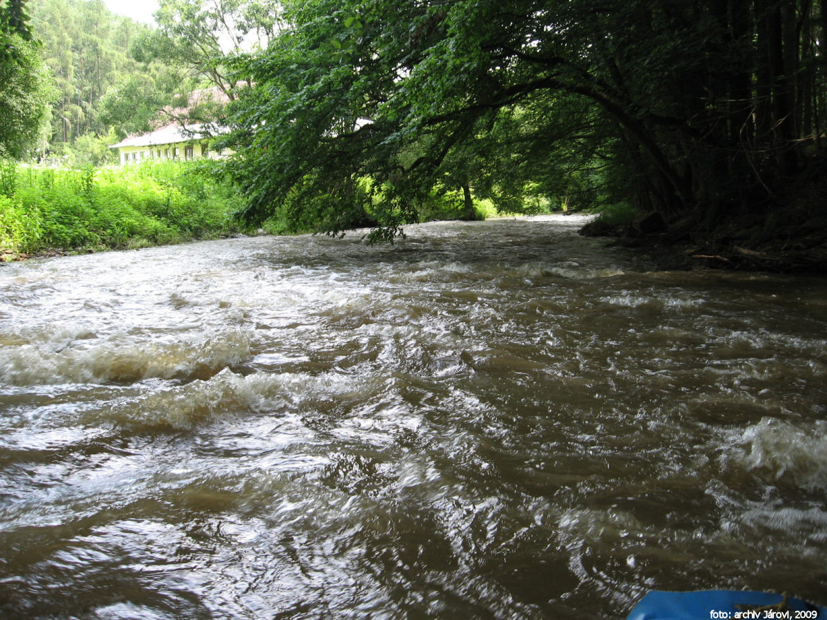 most cestní (místní) vodočet vlevo a následuje za 300 m jez (stupeň) sjízdné  3,5 km |