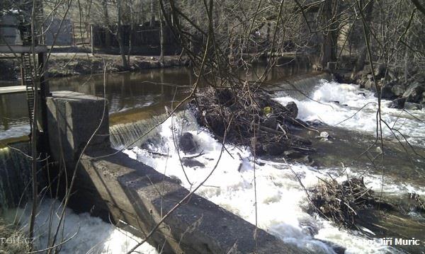cca 74,0 ř.km v Březině za siln. mostem po vracení nahonu spadly strom přes celou řeku a