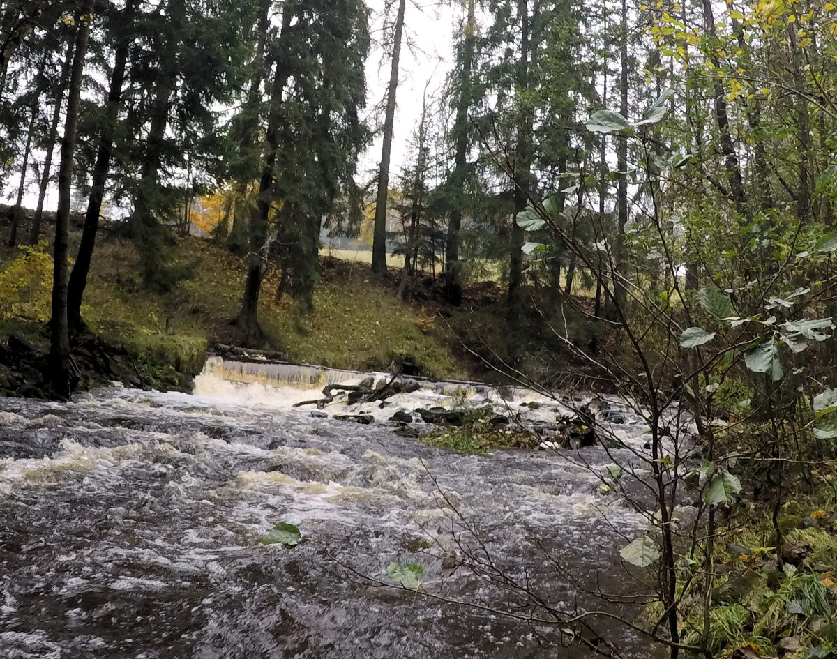 jez přenést vlevo vysoký (m) 1,6 po prohlédnutí sjízdné !! Kopaniny vpravo a následuje za 400 m jez (stupeň) !!  2,1 km |
