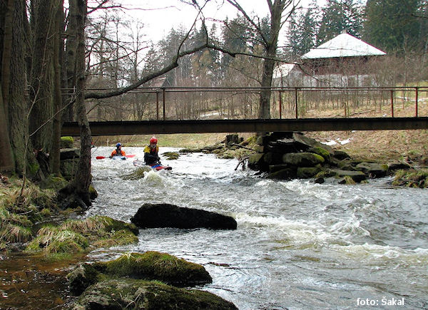 jez přenést vlevo nebo vpravo vysoký (m) 2,5 nesjízdné, slalomová trať pod jezem 0,6 km |