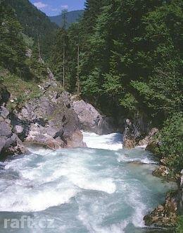 Asi dva kilometry před Steyrbrucke po přejetí peřeje pod mostkem za zatáčkou uprostřed řeky balvan z ...