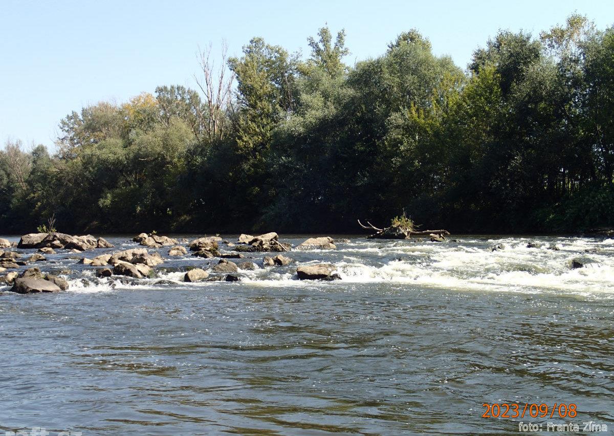 20.8. přehrada v Šalkové vypuštěná, podél obou břehů je spousta hlubokého bahna, vytáhnout loď je po ...