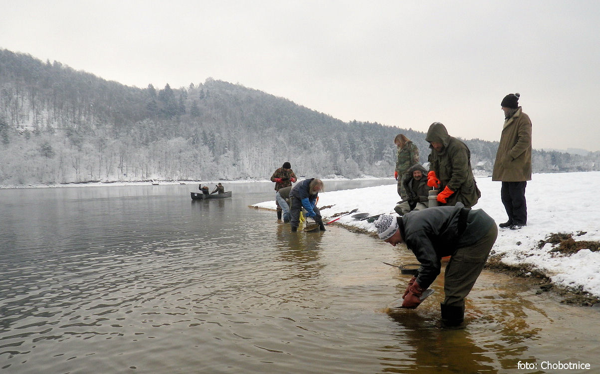 Když jsem trávil Velikonoce na vodní cestě, na břehu Velké řeky vzduté přehradou, jsem si všiml trochu atypické pláže. Místo šedých hranatých kamenů tam byl žluťoučký písek s valounky – stará říční terasa. Vypadala slibně a později jsem si ověřil, že obsahuje i trošíčku zlata. Žádné bohatství, ale bylo tam. S kamarády už mnoho let pořádáme dvě lednové zlatokopecké sešlosti – jednu na Bojovském potoce a druhá je putovní. Naplánoval jsem tedy nejbližší akci sem.