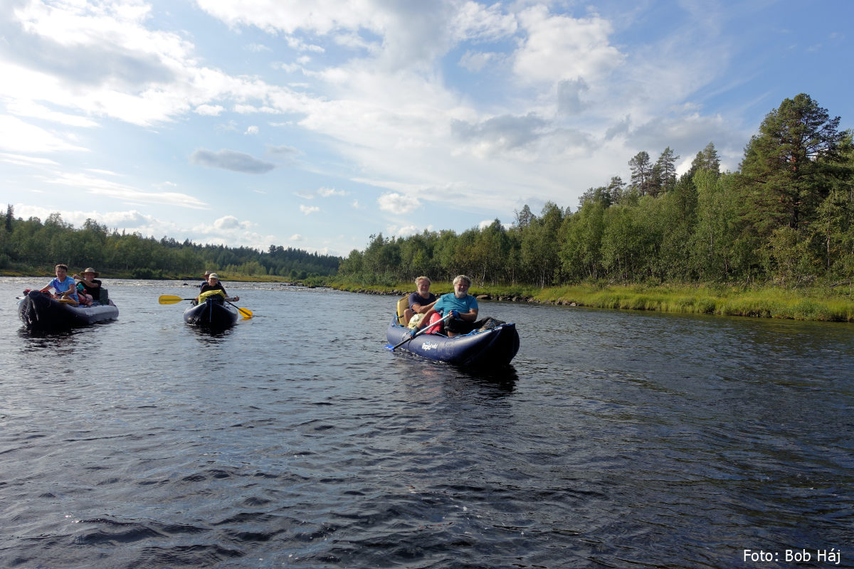 Tak jsme po dvou letech covidových uzávěr, těšení, shánění a příprav naskládali na dvoře u našich kamarádů mikrobus až nad střechu a vyrazili v polovině srpna na 2 700 km cestu na ten nejsevernější evropský sever. Německo, noc na trajektu, přejezd Švédska, noc v kempu u Luleå, dalších asi 800 km a zastavujeme u mostu přes Ivalojoki u osady Ivalon Matti. Přebalujeme věci, Radek odjíždí s autem do našeho cíle Inari. Nafukujeme, nakládáme kanoe a vyplouváme na prvních pár kilometrů. Před chatami u Ivalon Matti nacházíme pěkné tábořiště na vhodném místě, aby se Radek, který se musí vrátit stopem, k nám mohl snadno připojit. Podle popisu v průvodci je tento úsek řeky mírný a je to tak. Kamarádi, zkušení vodáci, trochu brblají, že takový „volej“ tedy nečekali, ale chlácholím je, že se dobrodružství dočkají.