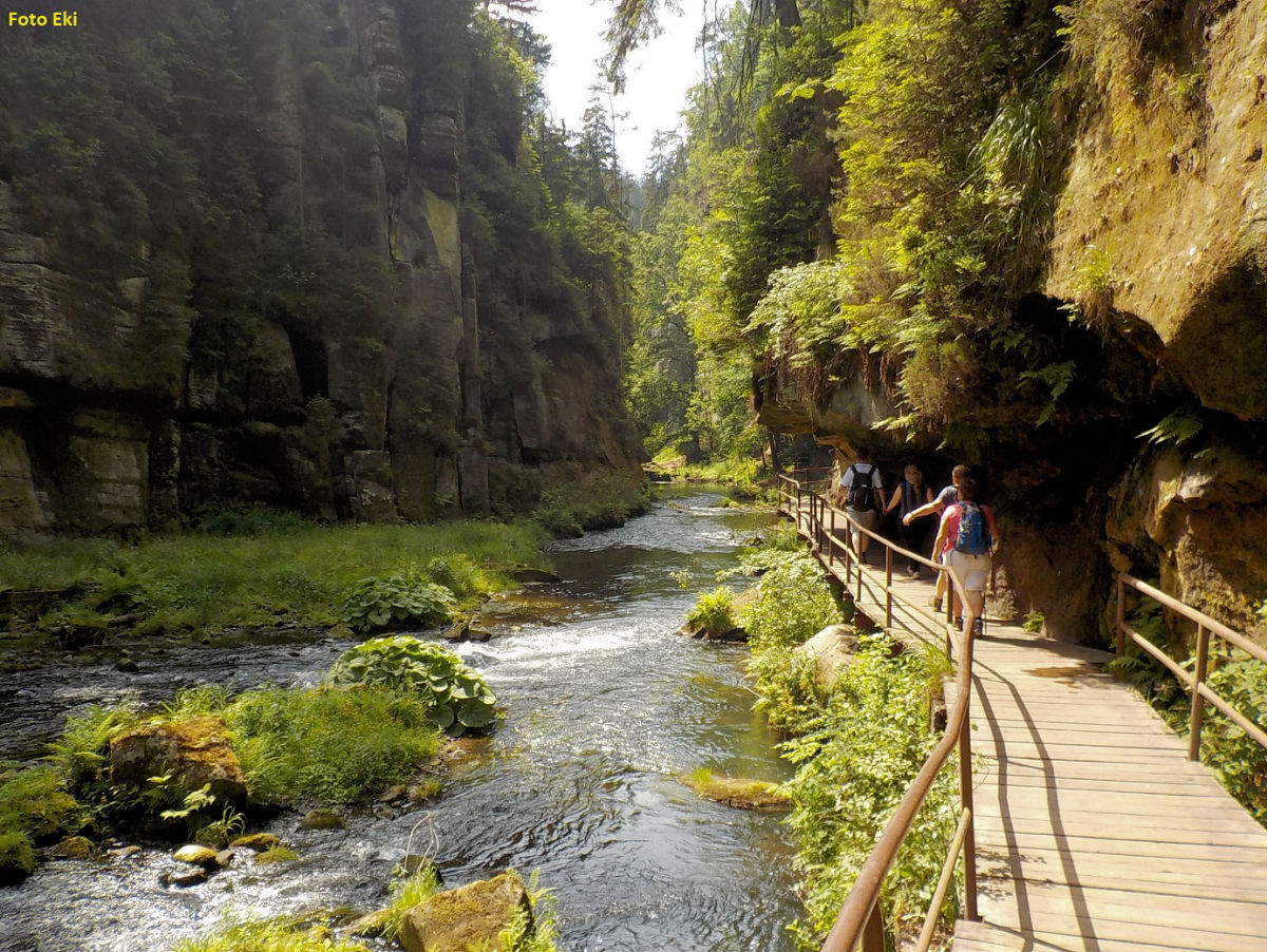 A babičko, není to ta Kamenice, s těma pískovcovejma skálama, co jsme se po ní plavili o prázdninách na takový tý přeplněný pramici a pán s bidlem nám při tom povídal vtipy?