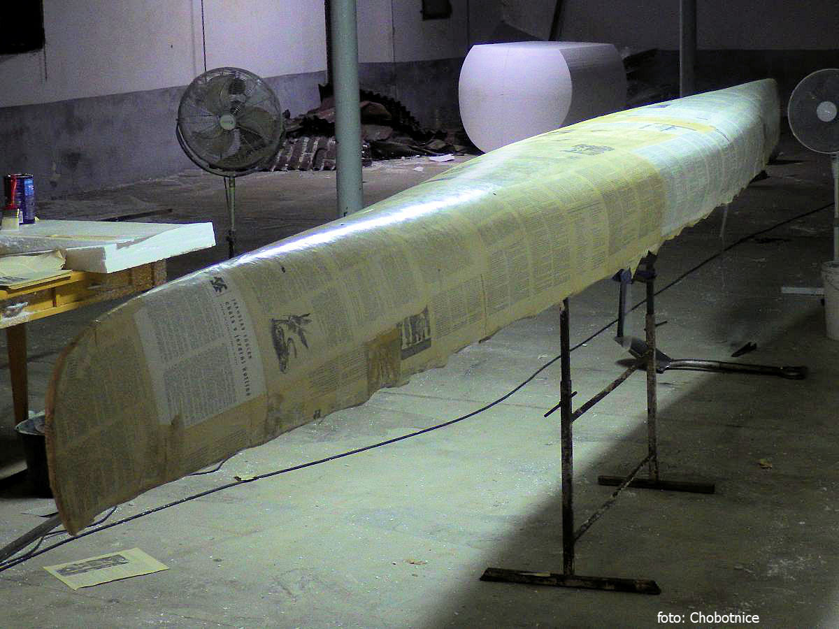 Cedrových lodí už jsem udělal několik a chtěl jsem zkusit něco nového. Léta mne zajímaly informace o starých kajacích s papírovým potahem. Nakonec jsem k tomu ale přistoupil po svém s využitím tradičních technologií využívaných v divadle. Dávno před nástupem laminátu se dělaly samonosné skořepiny menších kulis a rekvizit vrstvením papíru a lepidla, dříve nějakého klihu nebo škrobu.