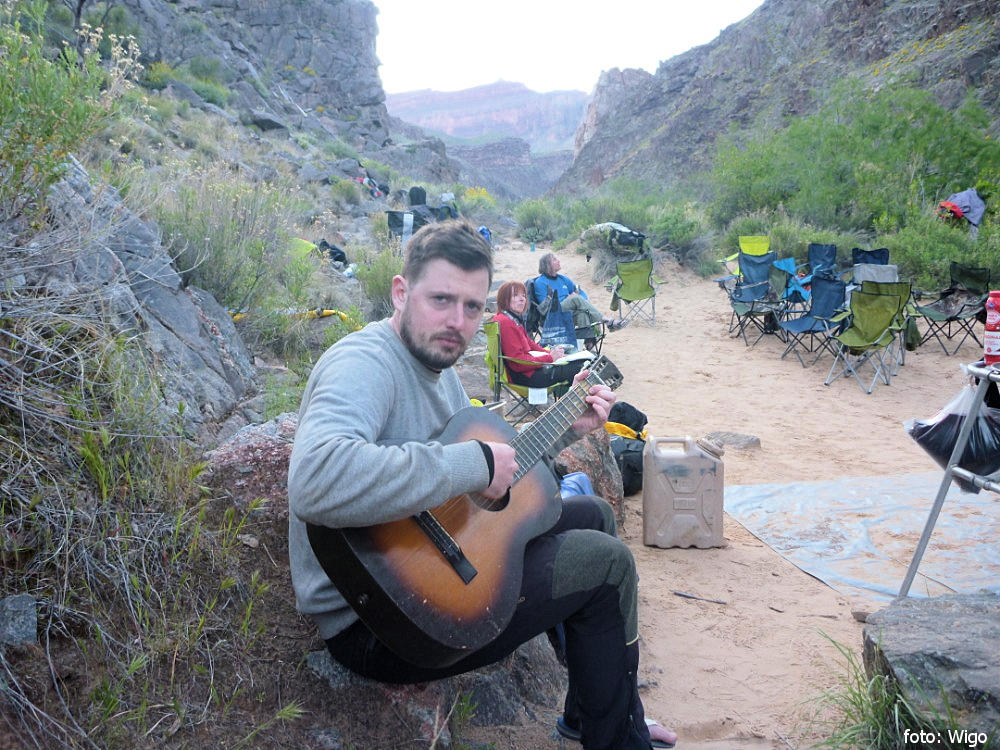 To není všechno. Tenká struna E praskla třikrát a pokaždé se ji podařilo svázat rybářským uzlíkem. Když jsme dojeli na Fantom ranč, což je jediné místo v 450 km dlouhém kaňonu, kde je hospoda, pokusil jsem se z hospodské vymámit náhradní strunu. Kolegy jsem byl označen za pošetilce, protože hospoda nabízela pouze pivo, limo, polévku, pohledy a poštovní známky. Paní odněkud vylovila plechový kyblík s chumáčem strun a řekla: "Vyber si."