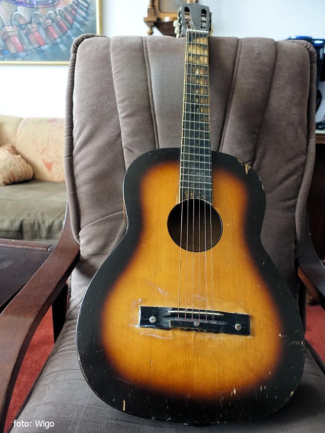 Kytara, kterou mám na mysli, mi kdysi věnoval kamarád Petr Žabka. Dnes už je značně ohraná, hmatník vyhmataný tak, že jsou v něm důlky a v těch místech už nemá ani černou barvu. Kobylka odpadla celkem třikrát. Vytrhla se vždycky i s třískami horní desky. Synovec Honza má podobnou, avšak podstatně zachovalejší. Chce si koupit novou a starou slíbil, že mi věnuje. Beru!