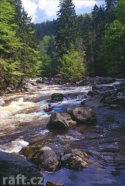 První velká peřej z Riegrovky (vždy prohlednout) s úvodními velkými balvany je zaterasana kládami. ...
