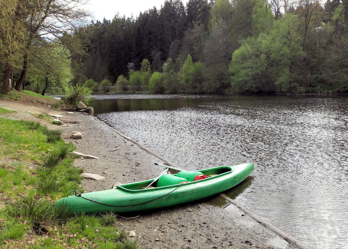 vlaková zastávka Černá v Pošumaví vlevo, Hotel (pension) restaurace vlevo, most vlevo, přes zátoku, šířka jezera více než 1 km - pozor za větru !! 0,3 km |