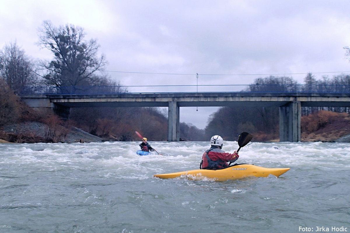 Při 145 cm na vodočtu v Dluhonicích jsme jeli hezký úsek z Hranic od jezu do Lipníka k mostu směr Tý ...