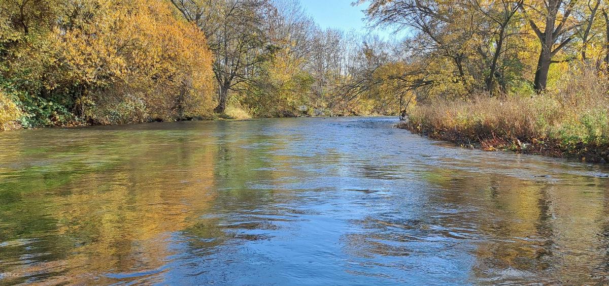 V dolním úseku, 3,5km pod jezem Březina, tedy v místě těsně za osadou Šárka kde řeka tvoří velký ost ...