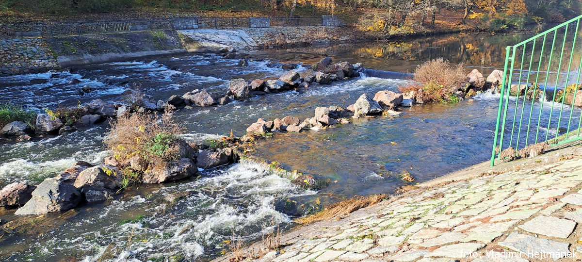 jez přenést vlevo nebo vpravo vysoký (m) 2,5 nesjízdné, slalomová trať pod jezem 0,6 km |