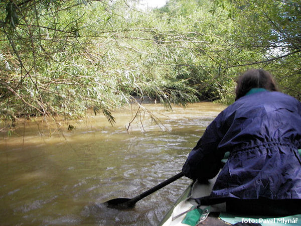 a následuje za 600m jez přenést vpravo nesjízdné, dlouhý náhon 1 km (odvádí většinu vody),