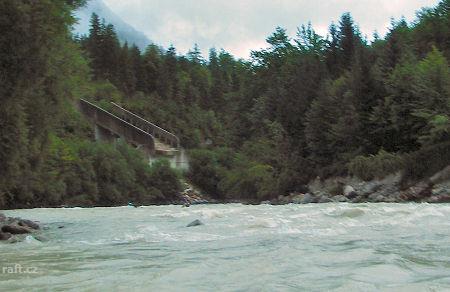 V několika kamenech závalu - peřeje IV+ před vysedáním Weissenbacht, jsou kovová oka. Je to v té spo ...