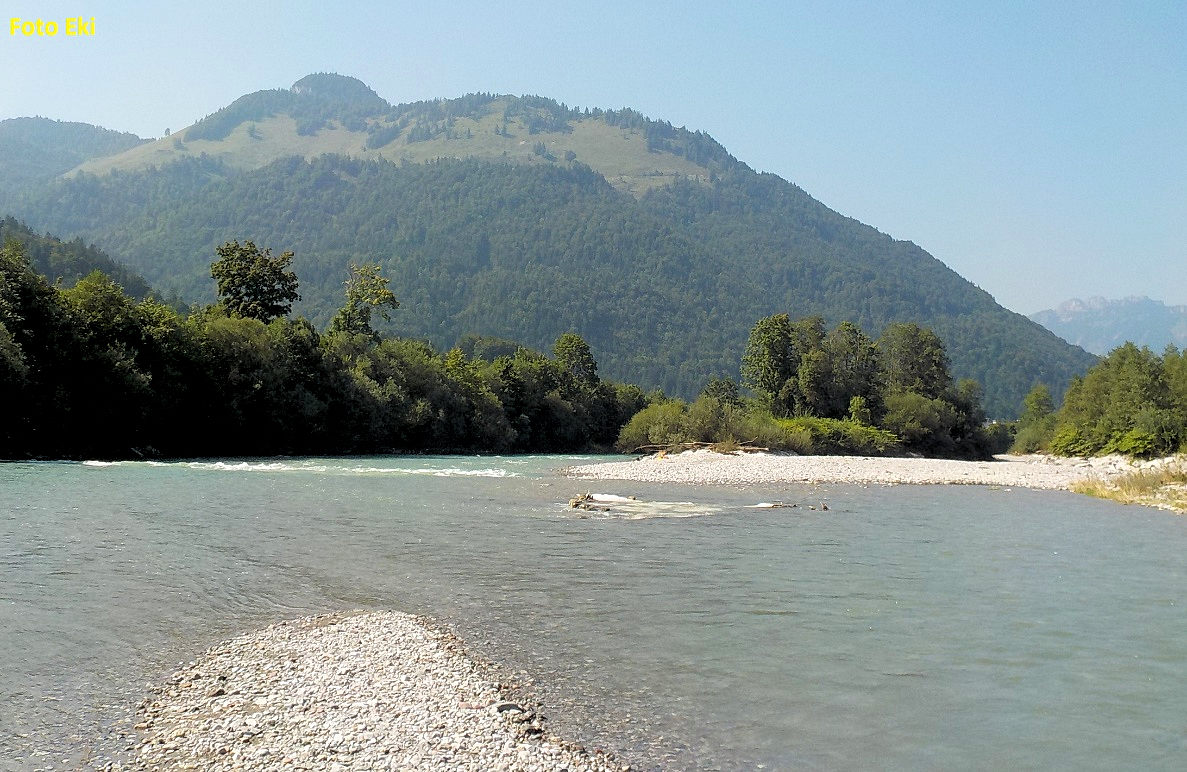 řeka opouští Rakousko (Tirolsko) a vtéká do Německa (Bavorska). Odsud až po km 22,1 zákaz výstupu na břeh.  2,9 km |