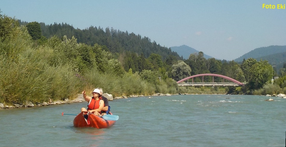 most silniční Kössen vpravo, obvyklý začátek plavby,  1,2 km |