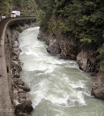 Za vyšší vody (my jsme to jeli v červenci po dešti) se dá nasedat pod soutěskou pod Annabergem. Stýk ...