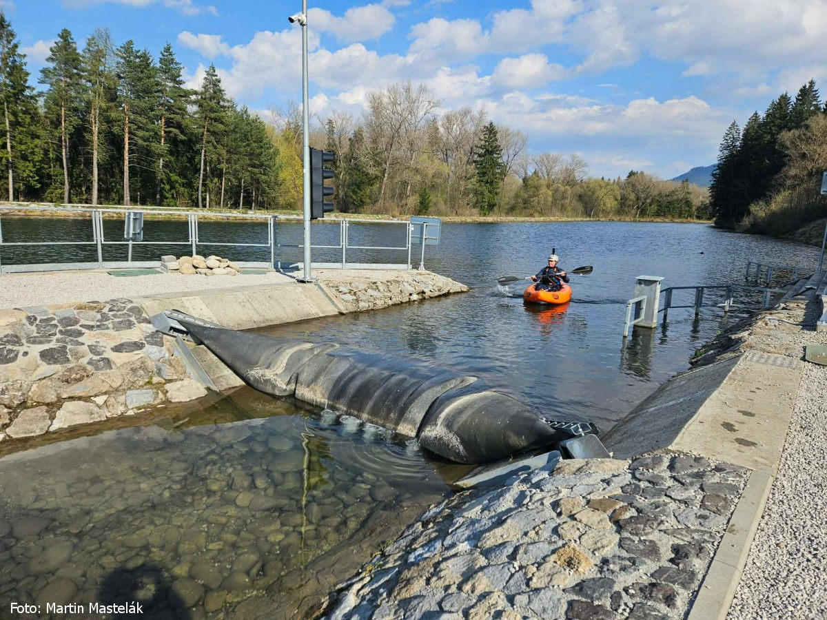 jez (stupeň)!! a následuje za 100 m jez přenést vpravo slalomová trať vlevo, 1,1 km (GPS: 49.0706097,19.6264608) |