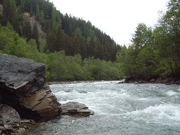 Poté obtížnější kaskáda. Pak opět jednodušší voda. Břeh na rakouské straně 1,0 km |